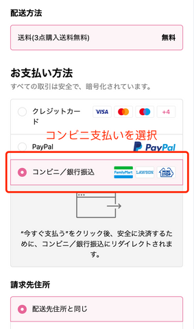1、購入手続きでコンビニ支払いを選択する
